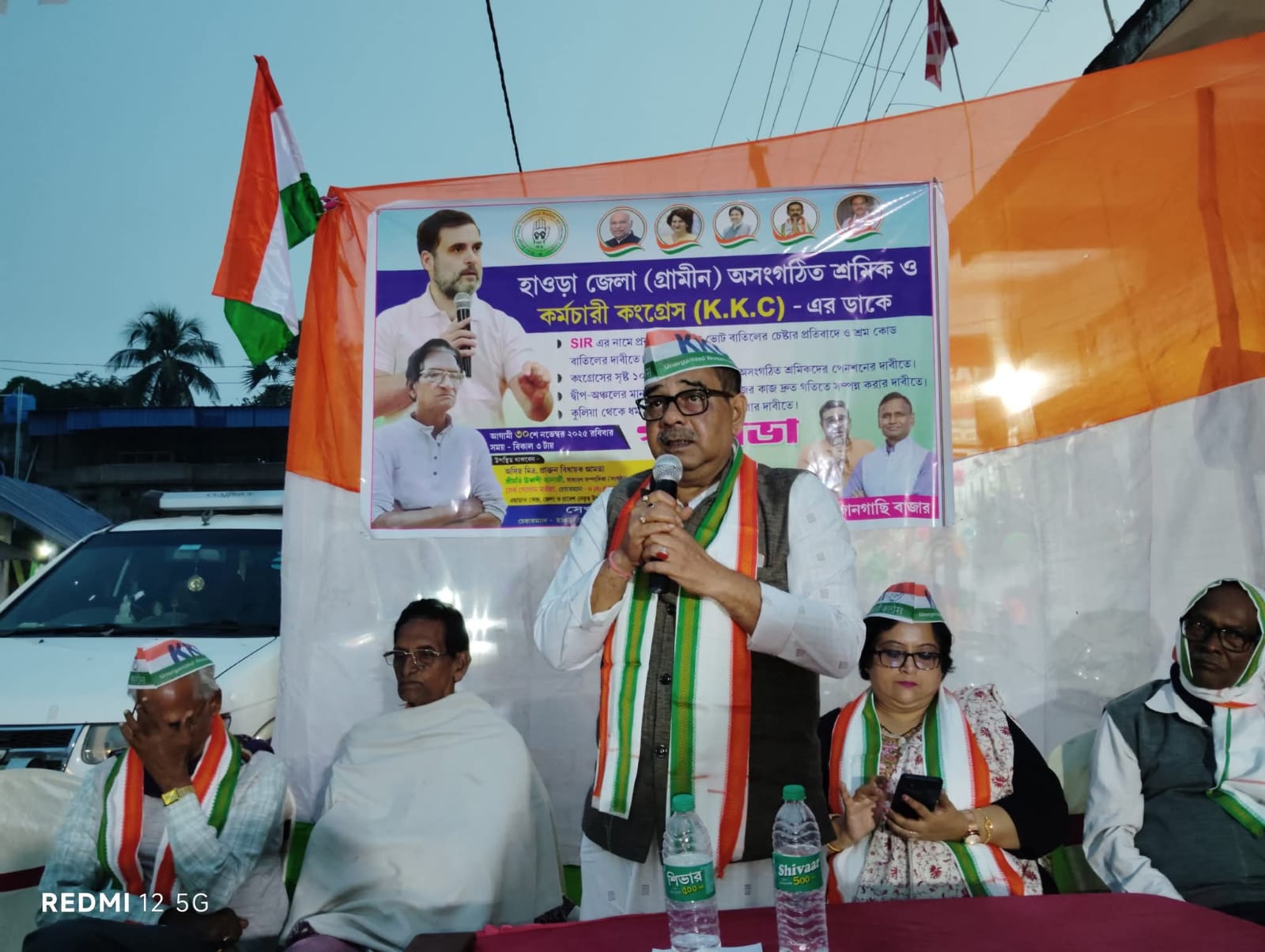 On 30th November 2025 a Street Corner Public Meeting was organised by Sk Araful Hazra, District Chairman of Howrah (Rural) District Unorganised Workers and Employees Congress against the Draconian Labour Codes at the centre of densely populated poor, marginalised Unorganised Workers mostly from minorities at Ajangachhi, Amra, Howrah.