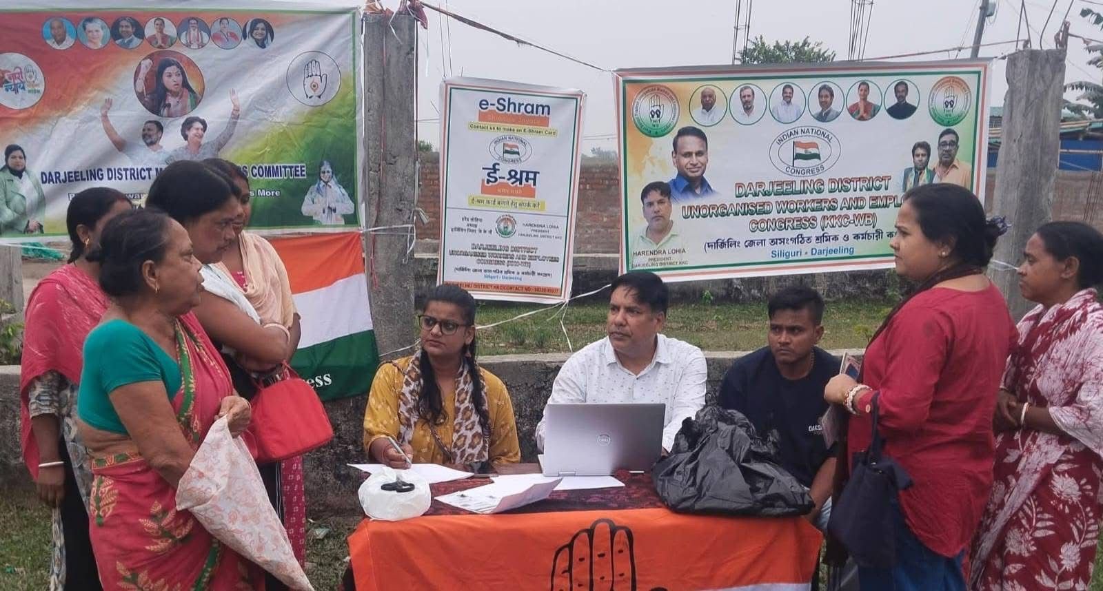 On March 15, 2026, an E-Shram Card registration camp was successfully organized in the Binay Krishna Palli (Patiram Jot) area of the Matigara Block in Darjeeling District, under the leadership of Mr. Harendra Lohia, Chairman of the Darjeeling District Unorganized Workers and Employees Congress.