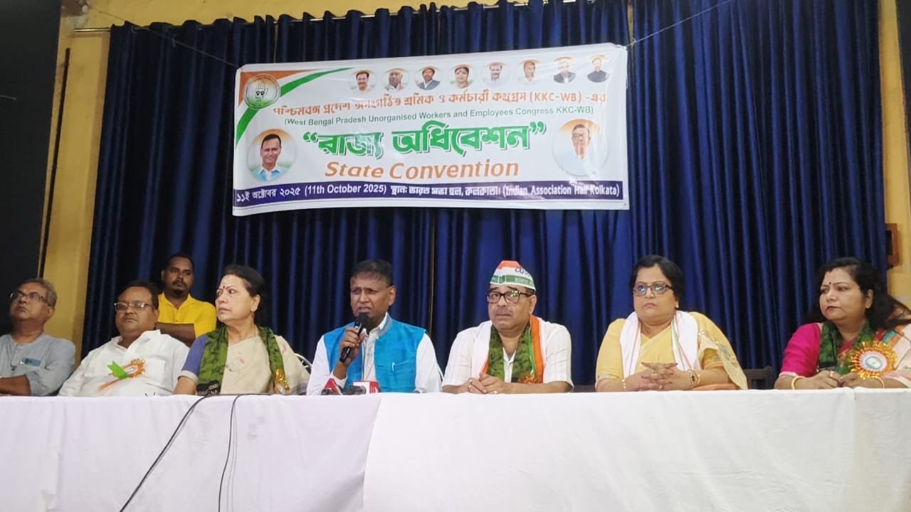 दिनांक 11 अक्टूबर 2025 को कोलकाता के भारत सभा हॉल में पश्चिम बंगाल प्रदेश असंगठित कामगार एवं कर्मचारी कांग्रेस (केकेसी) का राज्य सम्मेलन अभूतपूर्व रूप से सफल रहा।
