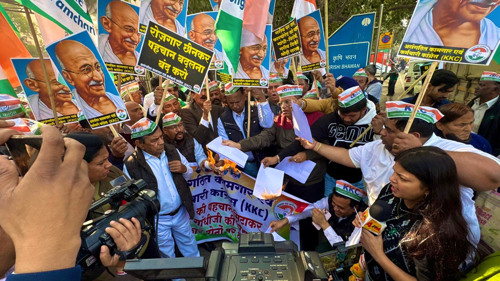 मनरेगा खत्म करने की 'साजिश' के खिलाफ असंगठित कामगार एवं कर्मचारी कांग्रेस (केकेसी) द्वारा दिल्ली के कृषि भवन पर कड़ा विरोध प्रदर्शन हुआ और विकसित भारत – रोज़गार और आजीविका गारंटी मिशन (ग्रामीण) विधेयक, 2025 (VB-G RAM G) की प्रतियां जलाकर इसकी कड़ी निंदा की गई।