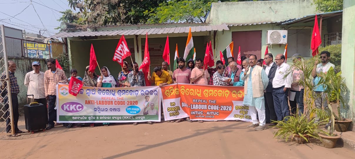 असंगठित कामगार एवं कर्मचारी कांग्रेस (KKC) के ओडिशा राज्य चेयरमैन श्री बिद्याधर मोहंती के नेतृत्व में जाजपुर जिले में केंद्र सरकार द्वारा लागू किए जा रहे श्रमिक-विरोधी और कॉरपोरेट-केंद्रित 4 लेबर कोड्स के खिलाफ एक बड़ा और संगठित विरोध प्रदर्शन आयोजित किया गया। इस प्रदर्शन में KKC के बड़ी संख्या में कार्यकर्ता, मजदूर प्रतिनिधि और सामाजिक कार्यकर्ता शामिल हुए।